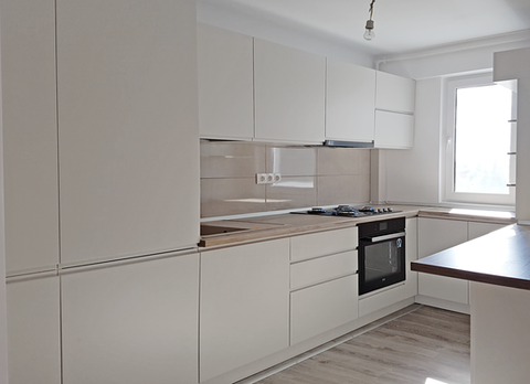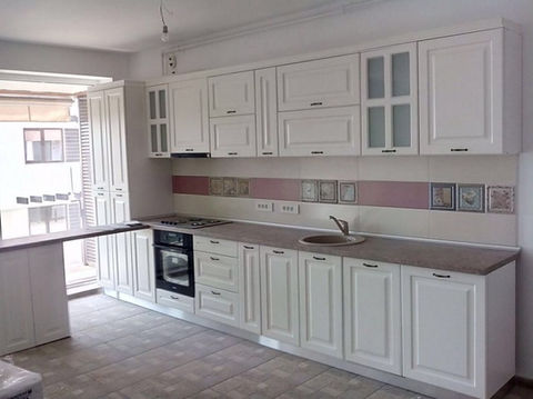 La comanda, putem produce mobilier de bucatarie din pal, mdf melaminat lucios sau mat, mdf vopsit, mdf infoliat, mdf frezat sau furnir, geam, etc...